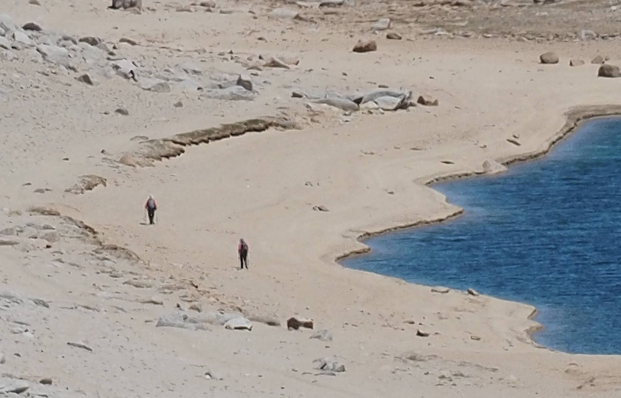 Ruby lake view from the switchbacks. June a few years ago when we first scouted this trip, it was frozen over.